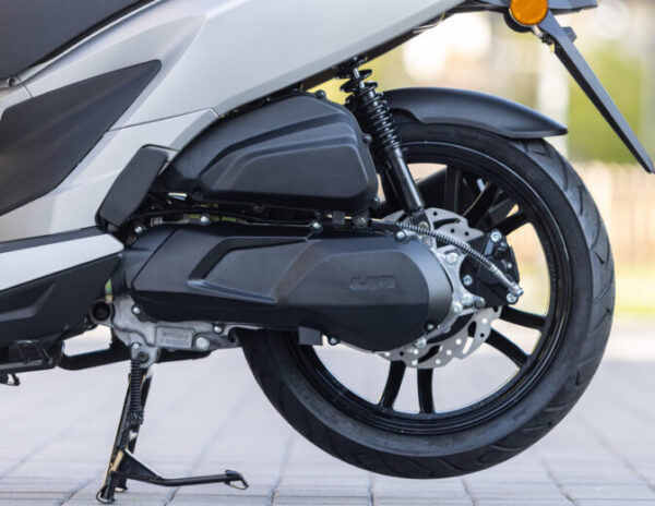 Le ruote alte offrono grande stabilità nel traffico cittadino, l’ampio piano pedana aggiunge comfort al pilota, consentendo un facile accesso e una stabilità di appoggio anche quando si parcheggia in spazi ristretti, e il suo peso molto leggero lo rende estremamente maneggevole.
