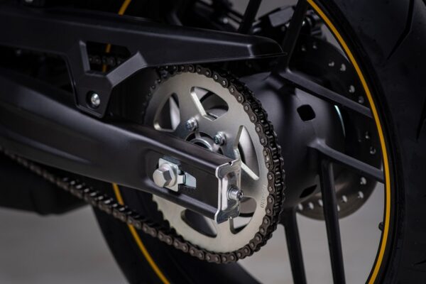Completano il design la sella del pilota studiata per garantire la massima abitabilità ed ergonomia, e quella del passeggero, che pur non interferendo con le linee slanciate della moto, offre una superficie ampia e comoda. Le ruote in lega da 17” con wheel stripes gialle o azzurre rendono ancora più visibile e appariscente questa piccola 125.
